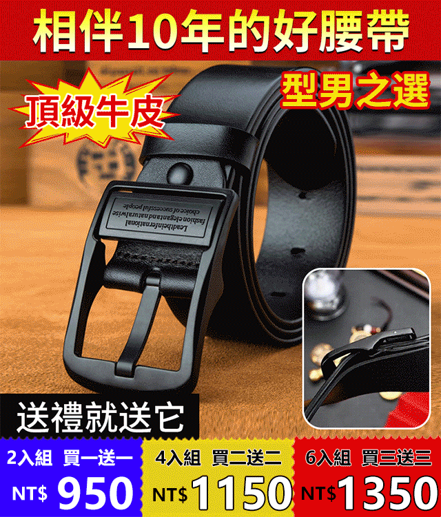 2分鐘前男士牛皮腰帶!讓您出門穿戴有面子!真皮腰帶,彰顯男人魅力 - 頭層純牛皮男士皮帶【超夯活動】買二送二$1150